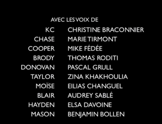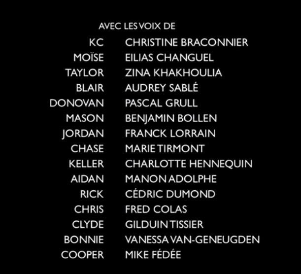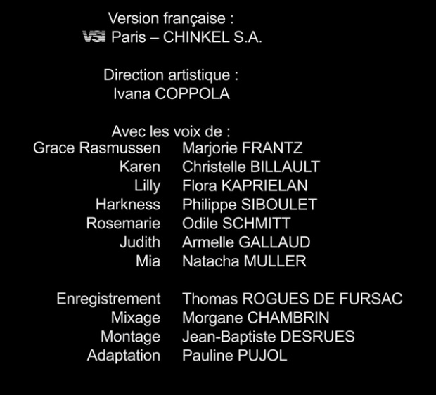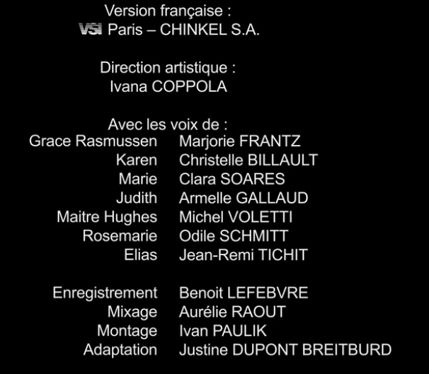 Netflix propose chaque semaine différents films et séries en version française doublée. Contrairement à d’autres services de SVOD internationaux, ce dernier propose des cartons de doublage à la fin de leurs programmes dits originaux.