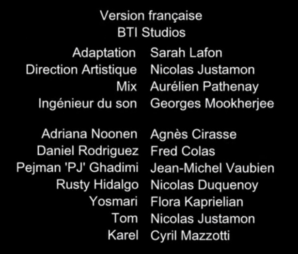 Toujours en sur-impression vocale, changement d’équipe pour la Saison 2 de Fastest Car, cette fois ci adaptée par Sarah Lafon, Laetitia Delcroix, Camille Roze et Noreen Ropers et dirigée par Nicolas Justamon chez BTI Studios.